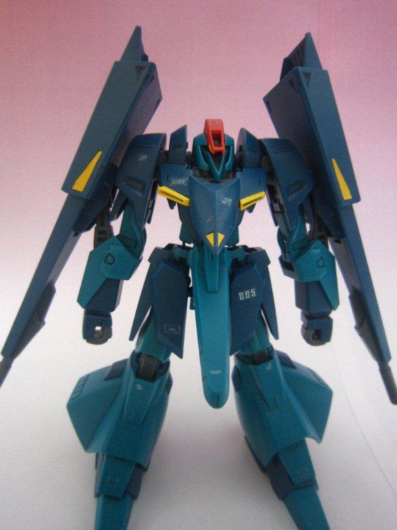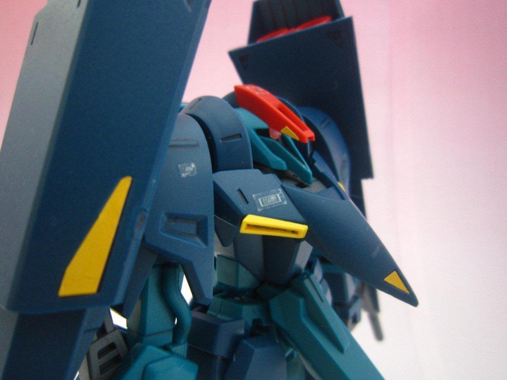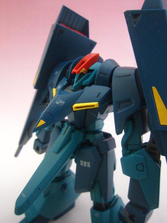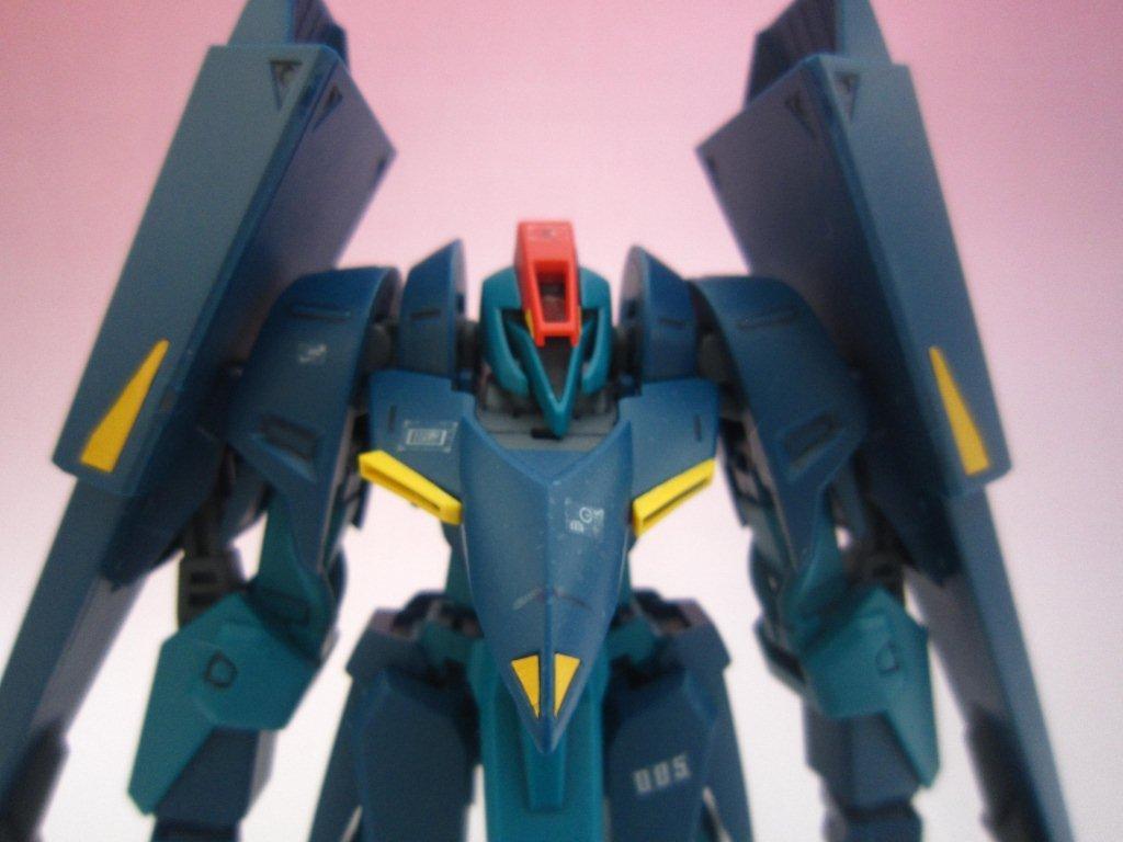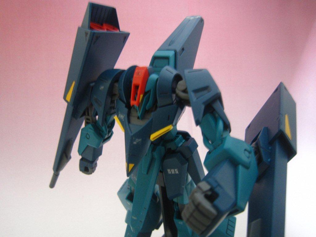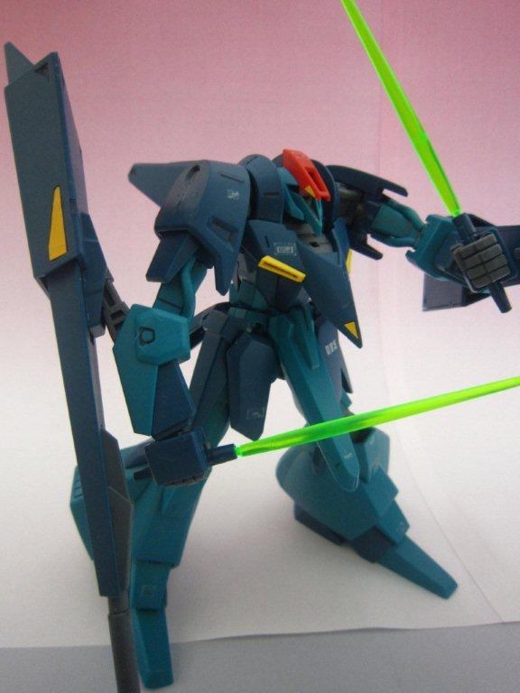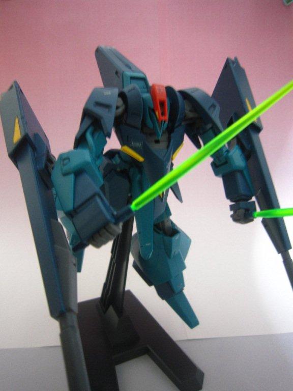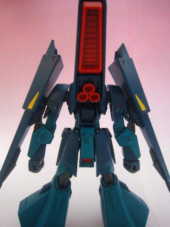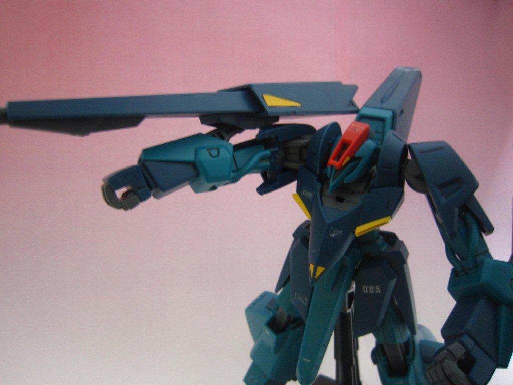 このキッドには専用台座がついてます。 ○ビームライフル。 文字通り両腕シールドバインダーに内蔵された射撃兵装。発砲時の光芒色はイエロー。MS、MA両形態で使用可能。バインダーのステーに内蔵されたパワーケーブルより直接高容量のドライブを行えるため、一般的なマニピュレーター携行モデルに比べ出力、連射性に優れる。ただしライフルシステム自体はエネルギー充填型で、第26話におけるヤザンの様に一度弾切れすると再リロード不可という欠点がある(この弾切れはヤザンの乱射が原因なので、本機の射撃回数が特に少ない訳ではない)。なお、設定によるとシールドには起動式の射撃安定用支持グリップがついているが、これが劇中で使用された事はない。