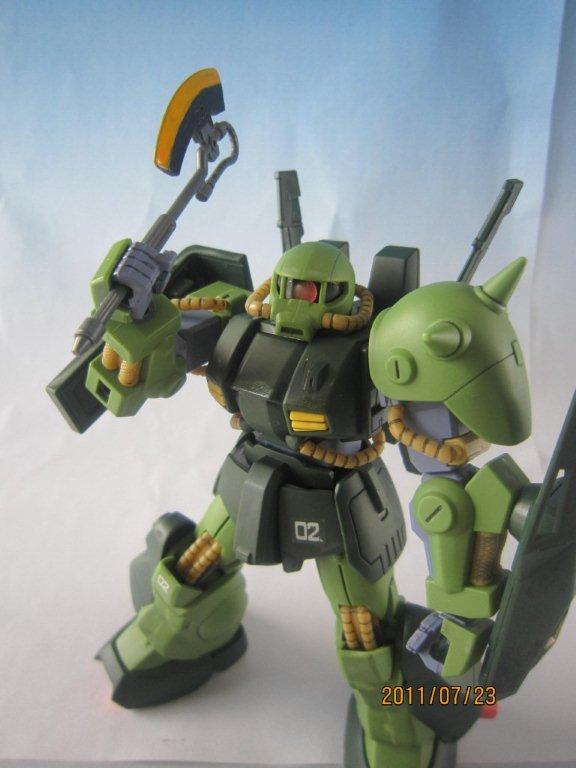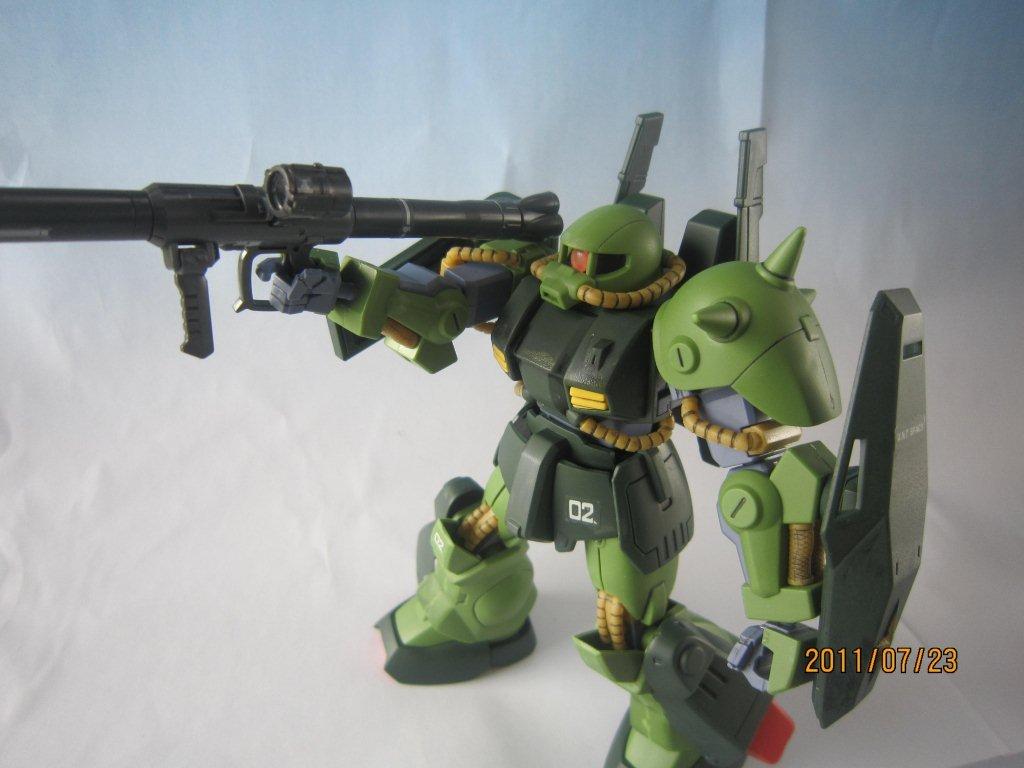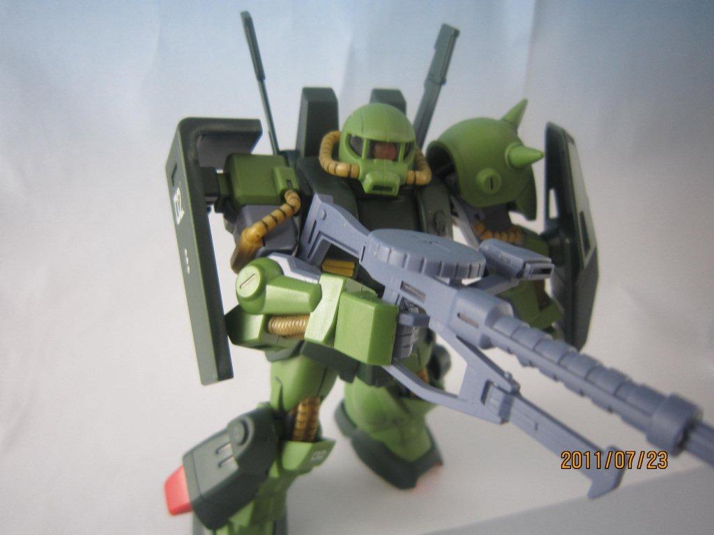 基本ポーズ。 アップ。 ザク・マシンガンを構えたところ。 右から。 後ろ姿。 ○感想 合わせ目があまりないキッドです。 足、肩、マシンガンくらいですかねー。今回は、足だけ合わせ目消ししました。 (なんかきったなくなっちゃって )部分塗装もほとんど無いですねー。今回しなかっったです。 800円くらいだし、シャア専用ズゴックに次ぐコスパに優れた良いプラモかも。 武器、手が少ないのが難点・・・