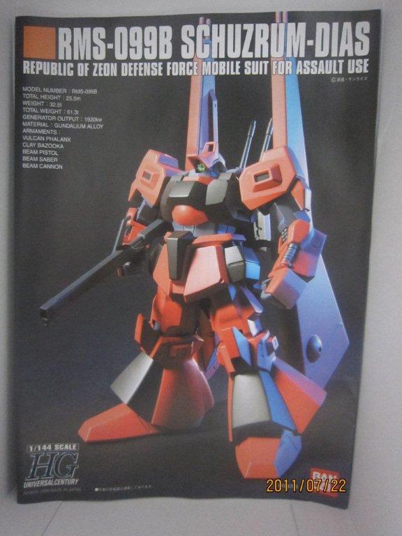 リック・ディアスが良かったんですが店にないし・・・シュツルムのほうはデカールがあるというので、シュツルム・ディアスなんて知らないけど、購入しました。 箱。 説明書。 ○機体説明 アナハイム・エレクトロニクス社が開発した、リック・ディアスの強襲用強化型。背部のバインダーをビームカノンを内蔵した大型の物に換装し、火力と推力を強化している。クワトロ・バジーナ大尉専用機[15]として開発されたが、クワトロにはリック・ディアスの後に百式が与えられた為、彼が搭乗する事はなかった。第一次ネオ・ジオン抗争の際、アナハイム・エレクトロニクス社とネオ・ジオンの政治的裏取引により横流しされたMSであり、またエゥーゴの元ジオン系軍人が寝返った際にネオ・ジオンに持ち込んで戦力となったMSである。主にジオン共和国軍の隠れジオン派であったサトウ率いるシュツルム・ディアス隊が運用した。