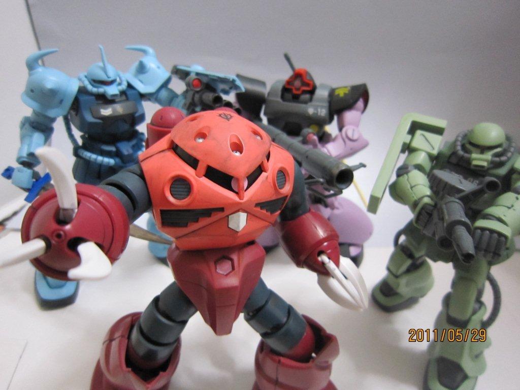 はじめてにしてはまーまーの出来です。 前回に比べたらすごい進化。 ○おまけ ジオン軍のMS再撮影。 集合写真。
