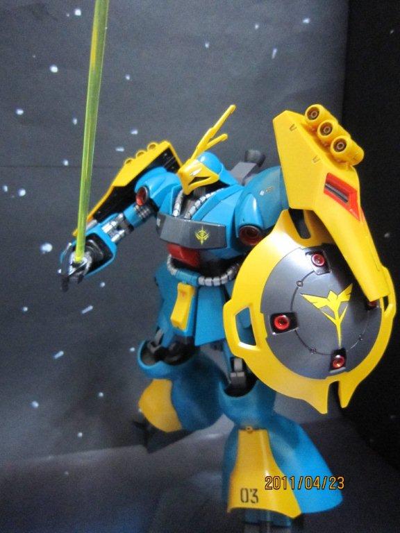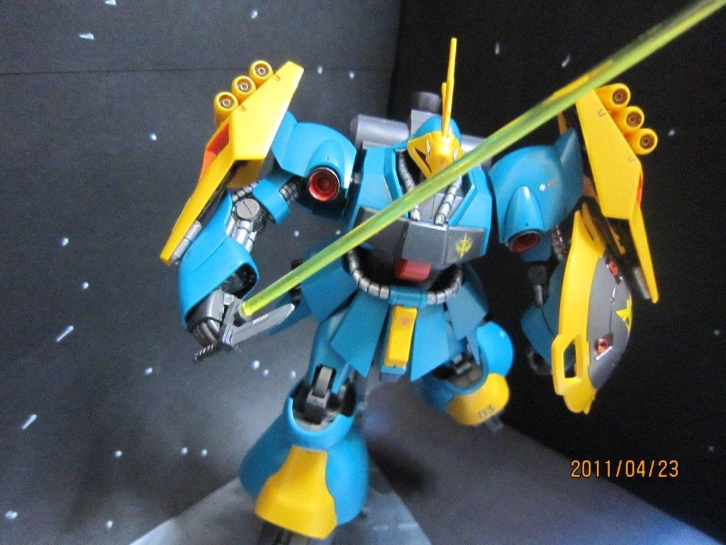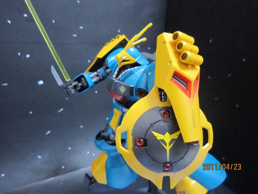 部分塗装は黄色のみです。 ・バーニア内部 ・肩と足の黄色いところ 後ろから。 ビームサーベルを構えたところ。 シールド内蔵式2連ミサイルランチャーをむけたところ。(ちょっとわかりにくい・・・) 逆襲のシャアで残りは「サザビー」だけになりました。(クエス・パラヤ専用機とレズンシュナイダー機が残っていますが・・・)あっ!「Hi-νガンダム」がまだあった。