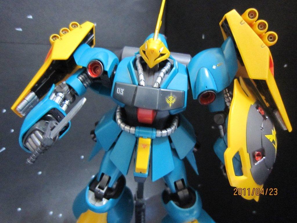 ヒート・ナイフを構えたところ。なんか現実味があっていいです。 あとはずーーーとビームサーベルを構えたシーン。 説明書やうまい人が作るヤクト・ドーガは、黄色箇所が金色、ボディーも青っぽくてかっこいいですが、これはこれで気にいってます。部分塗装大変でした。 ○おまけ ギュネイ機の説明: 少数精鋭のネオ・ジオン軍にあって中核として活躍した。 5thルナ降下作戦においては、アムロ・レイの駆るリ・ガズィを相手に5thの核ノズルを守りきり、降下作戦を成功に導いた(その際、リ・ガズィの銃撃により撃墜されかけ、駆けつけたシャア・アズナブルのサザビーに救われる)。 ニュータイプであるアムロには後れを取ったものの、その他の一般兵に対しては圧倒的な強さを発揮。ルナツー占拠の際はクェス・パラヤのヤクト・ドーガに随伴し、ファンネルを始め、ビームライフル、ミサイル、シールド内蔵のメガ粒子砲、ビームサーベルなどの搭載装備を繰り出しジェガン8機を瞬く間に撃破している。また、アクシズ攻撃の第一陣として突入してきたケーラ・スゥのリ・ガズィを戦闘不能にし、彼女を捕獲、殺害している。 ギュネイは、ラー・カイラムからアクシズに向け発射された核ミサイルを本機で全て撃墜、シャアをして「あれが強化人間の仕事だ」と言わしめた。 最終決戦においては、クェスのα・アジールと共にνガンダムに挑むも、完全なコンディションのアムロとνガンダムには敵わず、さらに、背後を取られたクェスを救おうと無理な姿勢で攻撃に出た際、バズーカとシールドを囮にした戦法に隙を突かれ、ビームライフルの直撃を受けギュネイ共々破壊された。