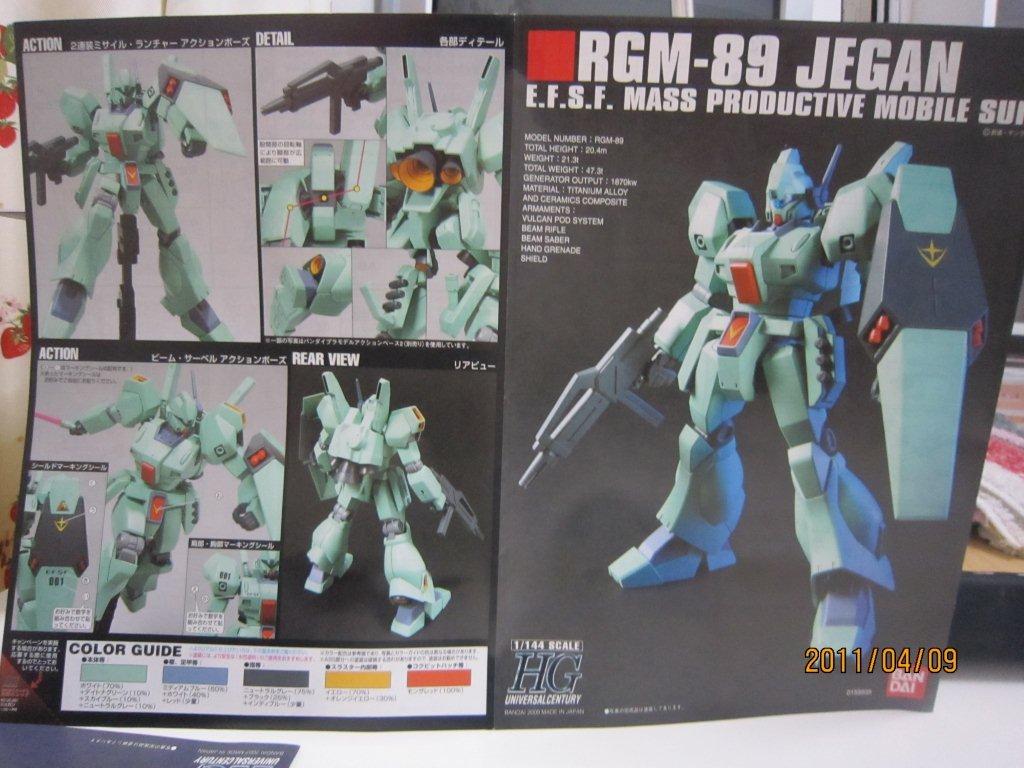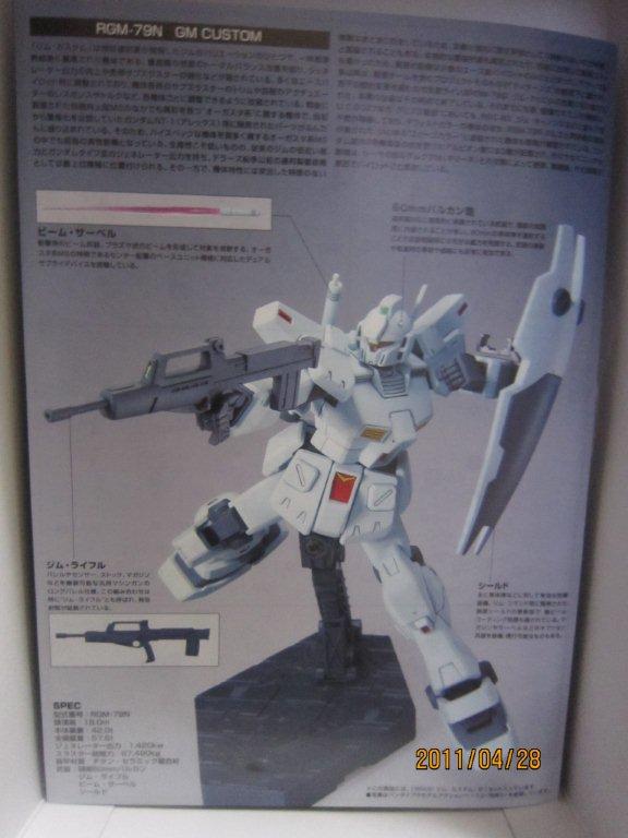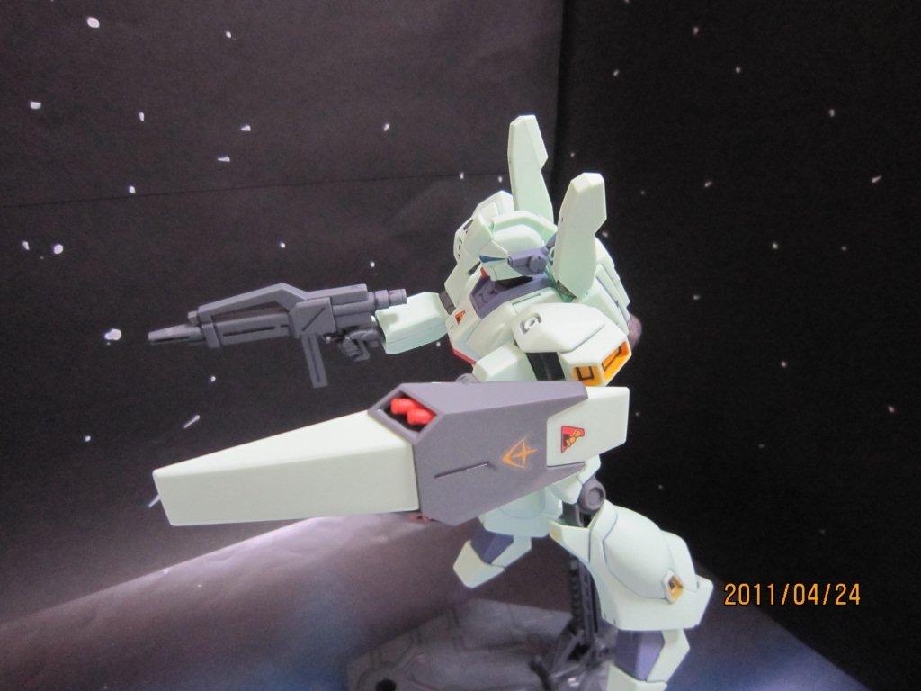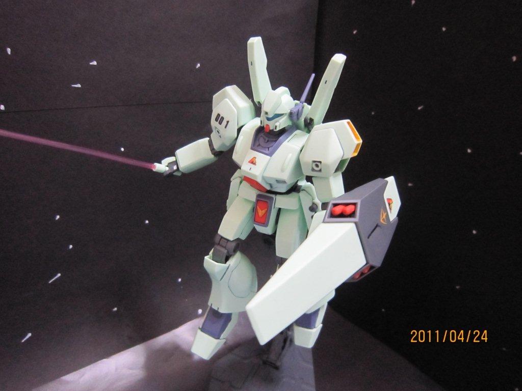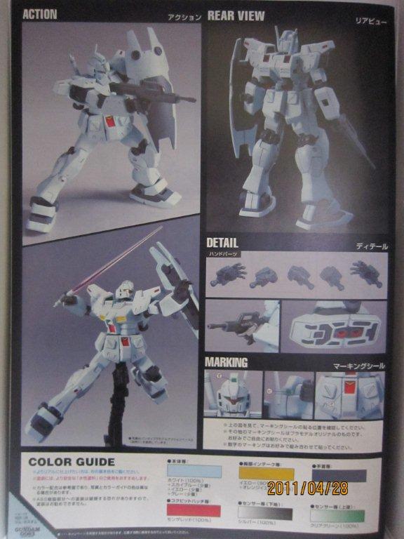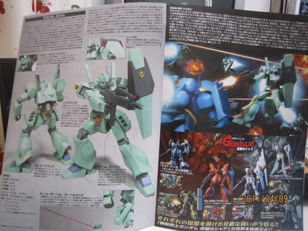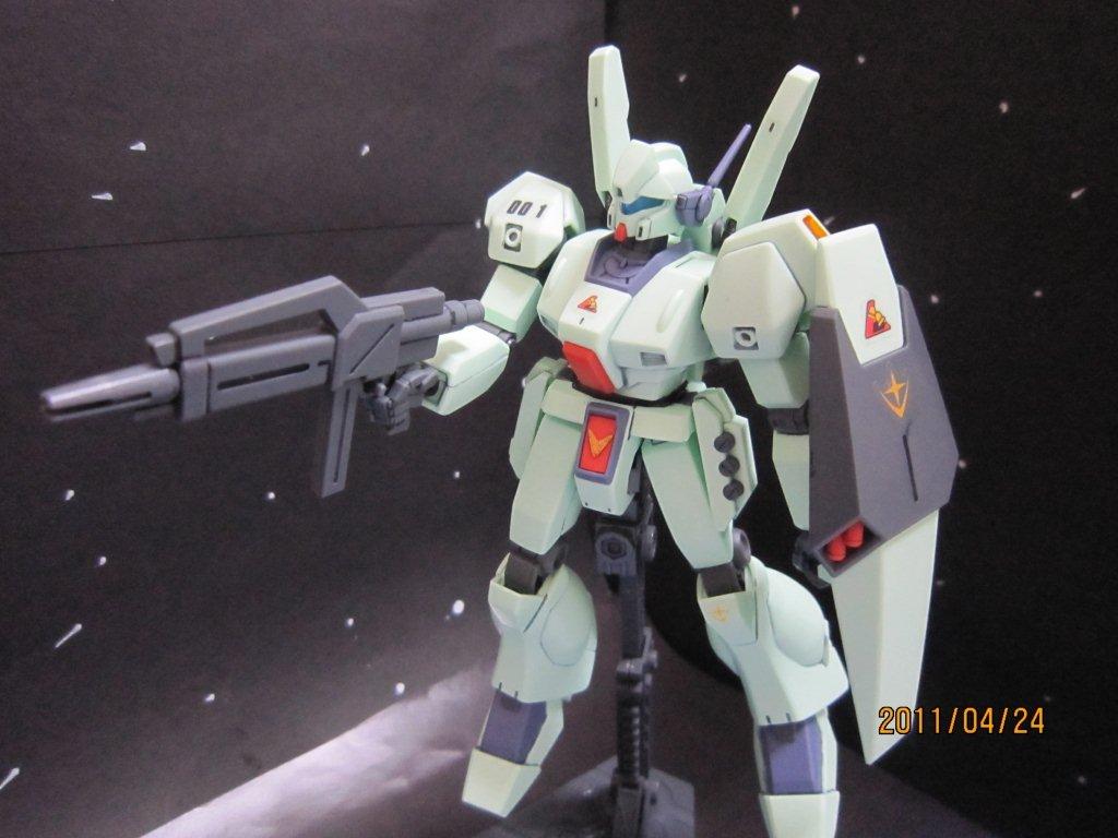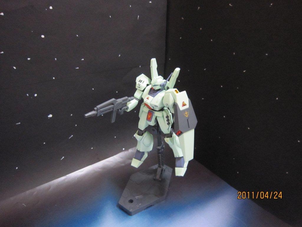 Re-GZと一緒にネットで買いました。 いつもどおり箱。 説明書。 ○機体解説 アナハイム・エレクトロニクス社が、ジムシリーズで蓄積されたノウハウを基に自社のMS技術を結集して開発した量産型MS。系統的にはネモ系統の発展型に属し、ジムとネモの長所を組み合わせた機体である。U.C.0089年より従来の主力機ジムIIIからの転換が進められ、第二次ネオ・ジオン抗争期のロンド・ベル隊を皮切りに地球連邦軍全体へと配備されていった。 装甲材質は従来のチタン合金セラミック複合材が採用されているが、ガンダリウムγ精製技術のスピンオフによって、一年戦争時のルナ・チタニウム合金(ガンダリウムα)と同等以上の耐久性を得ている。 頭部バイザーはやや大型で、カメラアイは縦に狭く表面積が小さい。またアゴの部分にはRX-78 ガンダム以来、ガンダムタイプMSやRGM-79G/GSが備えてきたのと同様の「オプチカルシーカー」がある。ジム系に比べ胸部ダクトが小型で被弾に強い構造を持つ。逆に腰部装甲は省略され、代わりに大腿部自体の装甲を二重化することで耐弾性を維持している。 バックパックは下部に大型1基と小型2基のメインスラスター、上部にはガンダムMk-IIに見られる可動式のバーニアブームを備え、従来の量産機とは一線を画す加速性と機動性を発揮する。燃料搭載量も多く、サブフライトシステム「ベースジャバー」や可変MS「リゼル」との連携により、長距離移動任務にも対応可能である。 基本武装はガンダムMk-IIの物を小型化・固定化した頭部バルカン・ポッド・システム1門と、右腰ウェポン・ラックのビーム・サーベル1基、時限式と感知式の2種の信管を持つ左腰ウェポン・ラックのハンド・グレネード3基。携帯武装として取り回しに優れた短銃身型ビーム・ライフルと、両側に2連装ミサイルランチャーを内蔵するシールドを装備。ビーム・ライフルはシールド裏面にマウント可能で、不使用時の携帯性を高めている。 操縦システムも一新され、連邦機としては初めて球状操縦桿「アーム・レイカー」を採用。これにより操作性は大幅に向上したが、やがて被弾などの衝撃で操縦桿から手が離れやすいという欠点が露呈し、後のモデルでは再び従来のスティック式に戻された。 第二次ネオ・ジオン抗争以降は特に大きな戦乱もなく、連邦政府の軍縮政策の後押しも手伝って、大小の改修を加えられながらU.C.0120年代初頭までの実に30年以上に渡り連邦軍の主力を務めた。これは機体の基本設計の優秀さもあってこそなせる業であったが、やがて台頭してきたCV(クロスボーン・バンガード)の小型MSには対抗しきれず、大型MS終焉の象徴ともなった。しかし、その血統はヘビーガン、ジェムズガンといった連邦製小型MSにも脈々と受け継がれていった。 採用から60年が経過したU.C.0150年代でもなお警備用として配備され、実戦を経験しているという説もあるので、それが本当ならば正規軍が採用し、現役で運用を続けたMSでは最長寿モデルということになる。 ○劇中での活躍 『機動戦士ガンダム 逆襲のシャア』では、ロンド・ベル隊の主力MSとして活躍、ネオ・ジオンのギラ・ドーガと渡り合う。終盤で、ネオ・ジオンに参加したクェス・パラヤを説得するために、ハサウェイ・ノアが搭乗して出撃するが、クェスのα・アジールはチェーン・アギが搭乗するリ・ガズィに撃墜され彼女は死亡。これを目の当たりにし錯乱状態となったハサウェイは、逆上してリ・ガズィを撃破する。 『機動戦士ガンダムF91』ではフロンティアIV守備隊として登場。クロスボーン・バンガードのMSの前に歯が立たずに翻弄・撃破され、第五世代の小型MSの強さをアピールする演出のかませ犬として終わった。