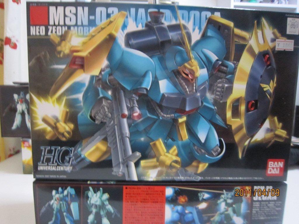 やっぱクエスよりギュネイでしょー。中途半端な悪役っぷり、そして普通にアムロにやられるっぷり。最高!! 箱。 説明書。 ○ヤクト・ドーガ (JAGD DOGA) 説明 第二次ネオ・ジオン抗争時に当初総帥専用機として開発が進められていたAMS-119N レーテ・ドーガが前身。この機体をベースに改修された実験機AMS-120X ギラ・ドーガ(サイコミュ試験型)の評価試験の結果、運動性に問題があったため本機が開発された。この際に大型のジェネレーターやスラスターの追加等、様々な換装が施され、ベースとなったギラ・ドーガ系とは全く異なる機体といって差し支えない。なお、前述の理由からシャア専用機としては、MSN-04 サザビーが新規開発されている。ヤクト・ドーガにはニュータイプ研究所出身の強化人間であるギュネイ・ガスとシャアに共感してネオ・ジオンに参加した少女クェス・パラヤの2人が搭乗した。 大きな特徴としてはサザビーと同型のファンネルを両肩に6基搭載し、ファンネルの稼働時間はサザビーと比べて短いものの、第一次ネオ・ジオン抗争当時のものより格段に進化している。機体本体も優秀であるが、量産機をベースにニュータイプ専用機として半ば強引に仕上げた為、機体バランスに多少問題がある。また、機体にサイコフレームが用いられている。 その他の武装はビームライフル(クェス機はメガ・ガトリングガン)、ビームサーベル、シールドと一般的ではあるが、シールドに関しては過去のYMS-15 ギャンやAMX-103 ハンマ・ハンマやPMX-001 パラス・アテネの様な武器内蔵型でメガ粒子砲を装備していた。 ギュネイ・ガスには深緑と金色で塗装された指揮官用アンテナ付の機体が与えられ、後にネオ・ジオン軍に加わったニュータイプ少女クェス・パラヤの機体は赤と銀色をベースに塗装されている。実戦投入されたのはこの2機のみである。 劇中では、物語序盤でアムロ・レイの駆るリ・ガズィと互角に戦った。だが、後に登場したロンド・ベル側の最新鋭機であるνガンダムの前では驚異的な火力・機動性などで圧倒され、格の違いを見せつけられる形となった。しかし、単独で広範囲の戦況を維持するなどニュータイプ専用機としての性能を発揮し、ネオ・ジオンの重要な戦力として活躍した。なお、型式番号のMSN-03は旧ジオン公国の最終モビルスーツであるMSN-02 ジオングからの通し番号で、実に13年ぶりに使用された。 (ウィキからです。)