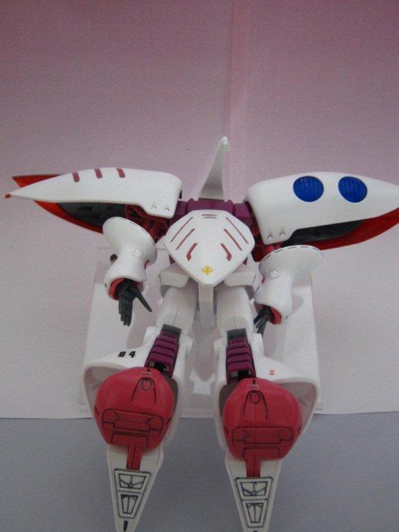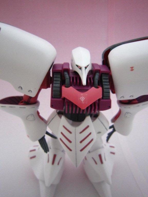 ○劇中での活躍 グリプス戦役末期にアクシズの指導者ハマーン・カーンの座乗する1機が実戦投入され、エゥーゴの百式やΖガンダムといったエース機を圧倒し、また本機と並ぶ当時最高峰のNT専用機であるティターンズのジ・Oともニュータイプ・パイロット同士による超常的な戦闘を展開した。 その後の第一次ネオ・ジオン抗争時には最終決戦時のみ出撃。ジュドー・アーシタのΖΖガンダムを相手に一進一退の死闘を演じる。戦闘中、ΖΖガンダムのハイメガキャノンの照射を受けたキュベレイは、搭乗者であるハマーンのニュータイプ能力によってバリアーを展開、直撃に耐えた。ハイメガキャノンの出力が増大し、キュベレイはコロニー壁面に叩き伏せられ、装甲を損傷する。しかし、ハマーンの戦意は失われず、戦闘の最終局面においてファンネルを囮に使った不意打ちを仕掛け、ΖΖガンダムと切り結ぶ。そして相打ちに近い形ではあったが、キュベレイは胴を両断される。敗北を認めたハマーンは上半身のみとなったキュベレイをモウサの壁面に激突させ、機体は爆散した。(ウィキより) ○感想 部分塗装は肩の羽の裏側とビームサーベルの付け根を赤。 合わせ目消しは、腕を軽く。 ピンクのシール張りが大変です。 ジオンマーク等適当なマーキングシールを貼りました。 ガンプラには必須の「キュベレイ」です!!(顔が怖い・・・)