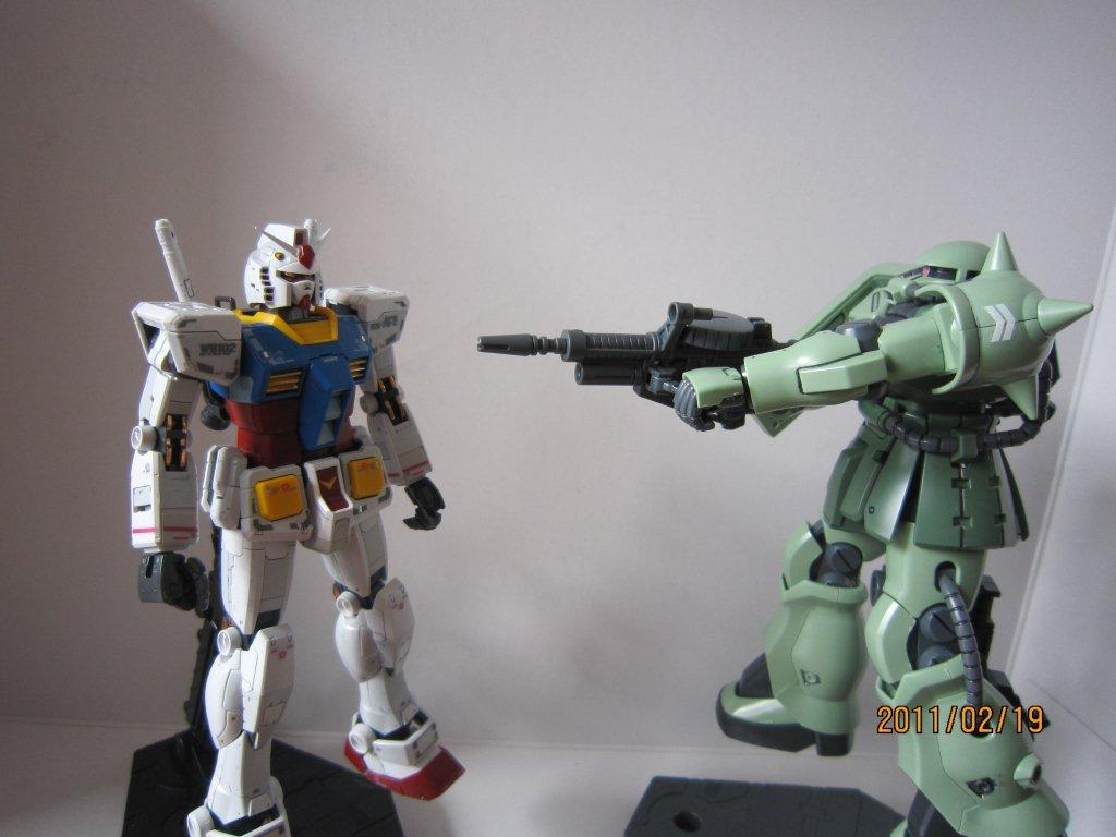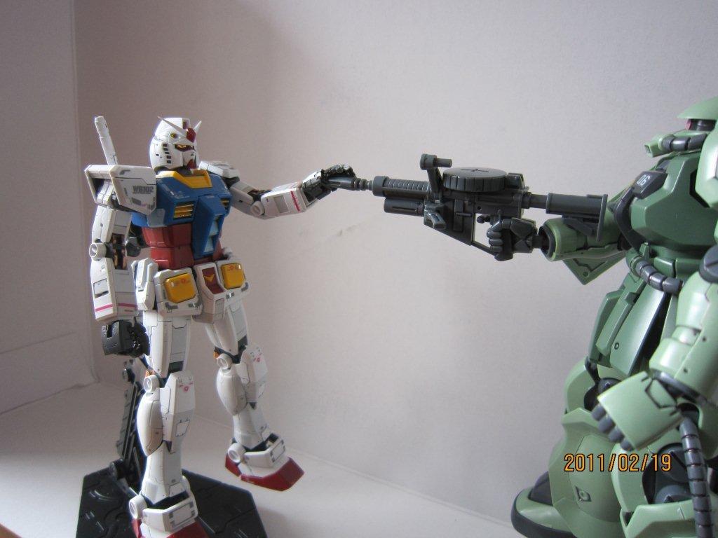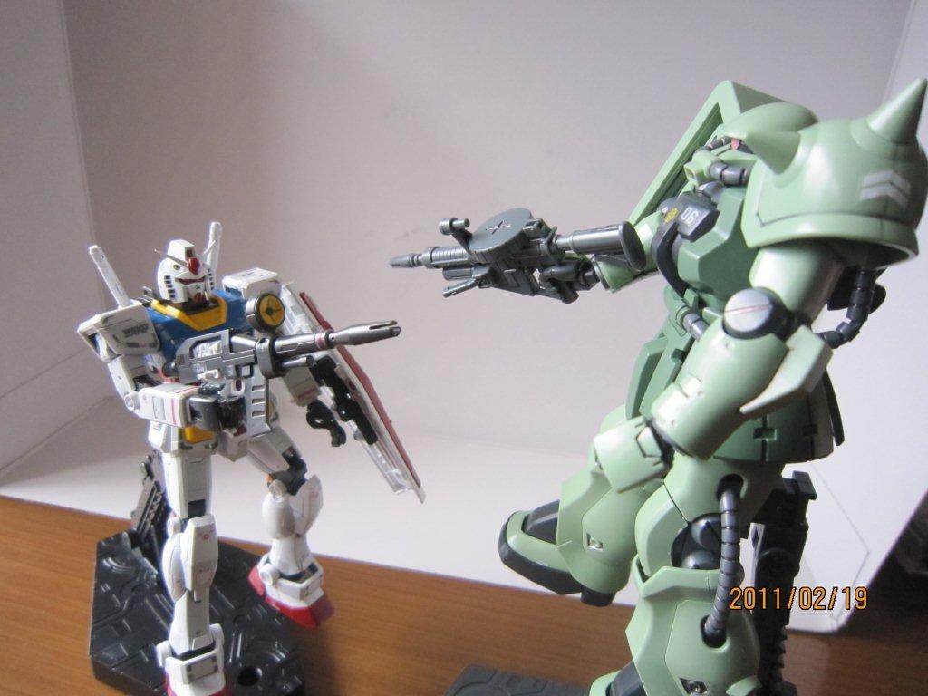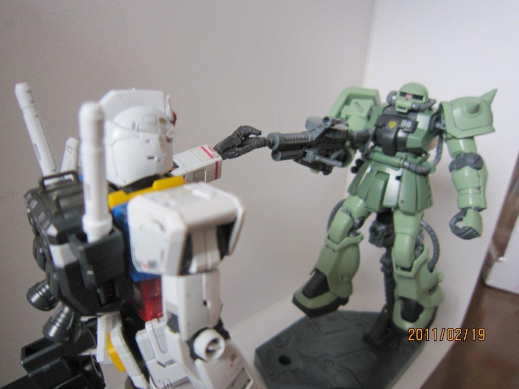 ガンダムとザクⅡの対決シーン。