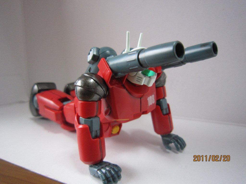 でもやっぱり昔のプラモデルなので、難しいっちゃー難しい・・・ここでゲート処理させるかっ!って感じ。 RGガンキャノンの発売を求む!! 基本ポーズ。 「108」カイ・シデン用。 後ろから。 アニメのシーン。これ専用の手がある。その他2個ぐらい手があるけど、何用だろう?くっつかないし・・・