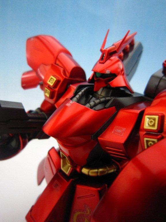 メタリックコーディングバージョンなので、合わせ目消しなし(無理)、スミ入れ少々、ゲート処理もなし(なすがまま・・・)です。 まずは基本ポーズ編です。 ○ 物語冒頭から最後までシャアの愛機として活躍し、序盤ではアムロが乗るリ・ガズィを圧倒し、ロンド・ベルがアクシズ破壊の為に放った核ミサイルを全て撃ち落している。 劇中においてギュネイ・ガスが搭乗するヤクト・ドーガのファンネルはアムロ・レイのνガンダムのフィン・ファンネルに一方的に撃墜されていたのに対し、サザビーの放ったファンネルはフィン・ファンネルと互角に渡り合っている。 サイコフレーム技術を流用し互角の性能となったνガンダムとの一騎打となるが、格闘戦の末アクシズ表面に激突する。この際に脱出装置が作動し、射出された操縦席ブロックはνガンダムに捕らえられた。 (ウィキより引用)
